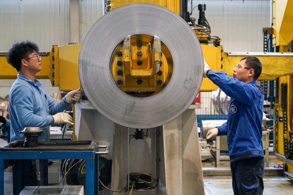 2023年3月16日,工人在位于太倉市高新區(qū)的威爾斯新材料(太倉)有限公司生產(chǎn)車間內(nèi)進(jìn)行加工作業(yè)。新華社記者李博攝