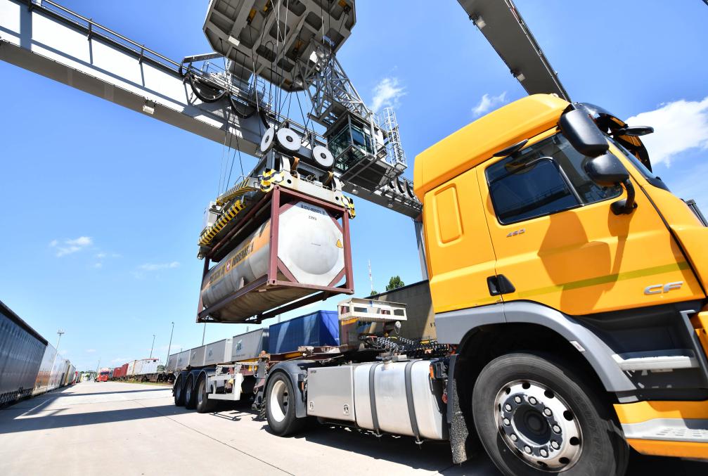 5月27日,龍門吊在德國漢堡-比爾韋爾德DUSS貨運(yùn)場站作業(yè)。德國漢堡是中歐班列在歐洲的重要站點(diǎn)。新華社記者任鵬飛攝