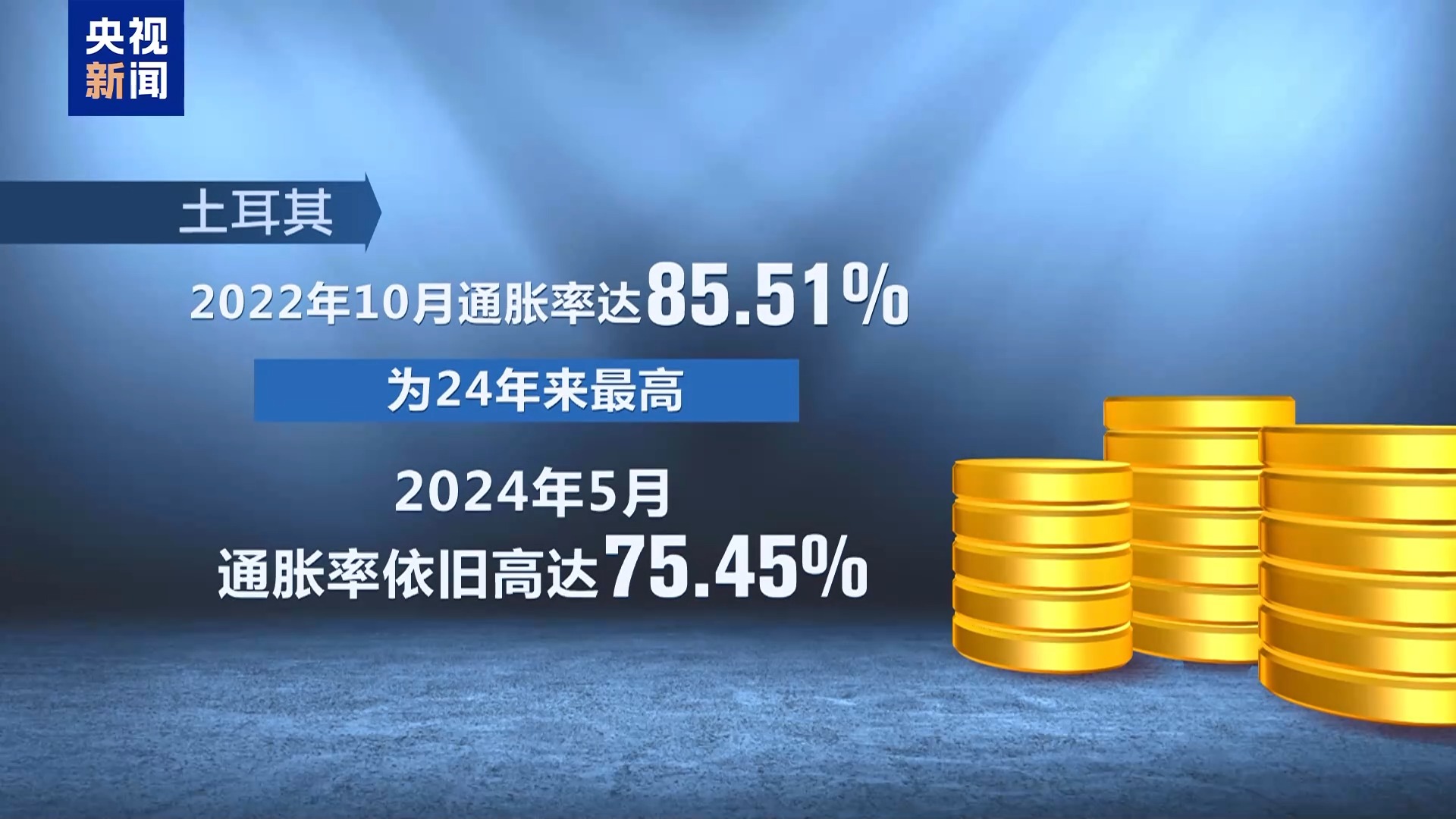 貨幣貶值伴隨著通脹的高企。土耳其2022年10月通脹率達(dá)85.51%,為24年來最高,2024年5月通脹率依舊高達(dá)75.45%。