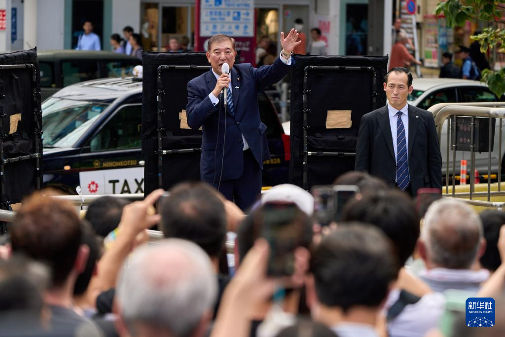 9月26日,石破茂在日本東京上野車站前進行演講。新華社記者 張笑宇 攝