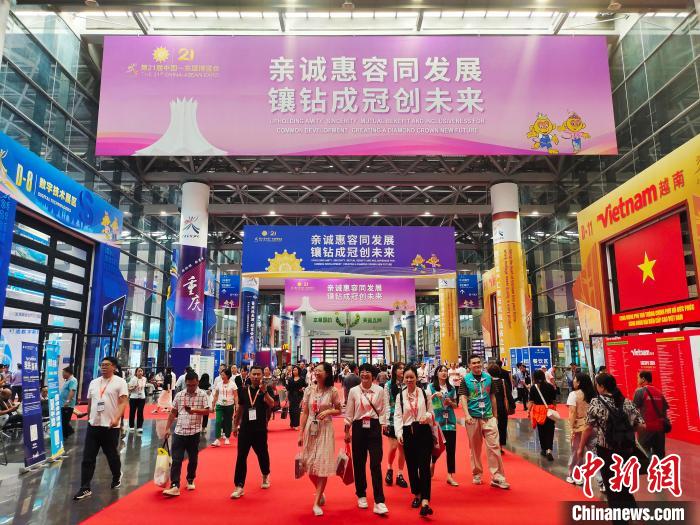 9月26日,在廣西南寧國(guó)際會(huì)展中心,民眾在參觀第21屆中國(guó)—東盟博覽會(huì)展區(qū)。中新社記者 黃艷梅 攝