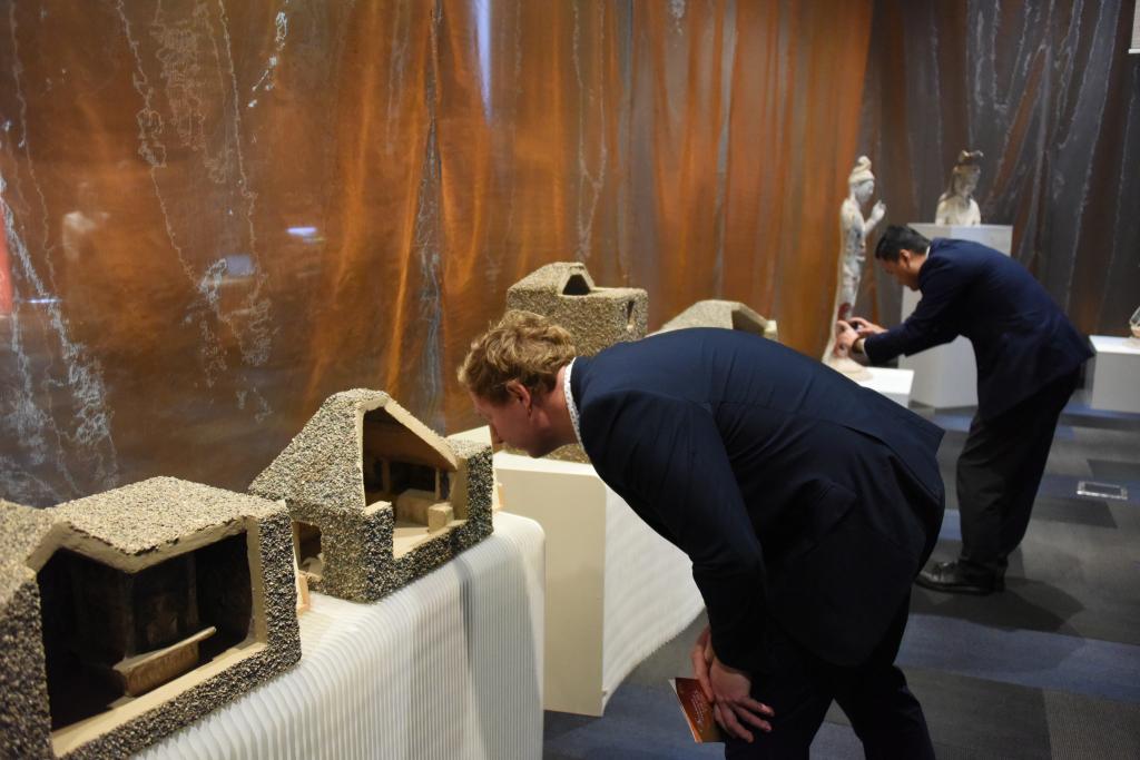 新中友協(xié)奧克蘭分會副主席利奧·德·格拉夫在VR展臺體驗數(shù)字化還原的莫高窟第285窟后,表達了自己“要去一次敦煌”的愿望。新西蘭國會議員珍妮·薩萊薩穿過莫高窟第3窟的復(fù)制洞窟,感嘆“真切體會到美與文化之間的相互關(guān)聯(lián)”。