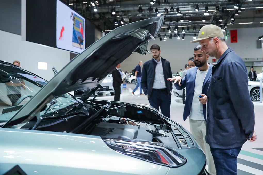 9月11日,人們?cè)诘聡?guó)法蘭克福國(guó)際汽車零配件及售后服務(wù)展覽會(huì)上參觀吉利展臺(tái)。為期5天的法蘭克福國(guó)際汽車零配件及售后服務(wù)展覽會(huì)10日開幕。吉利、比亞迪等多家中國(guó)電動(dòng)汽車品牌首次集體亮相,被德國(guó)媒體和業(yè)內(nèi)人士視為本次展會(huì)一大看點(diǎn)。新華社記者張帆攝