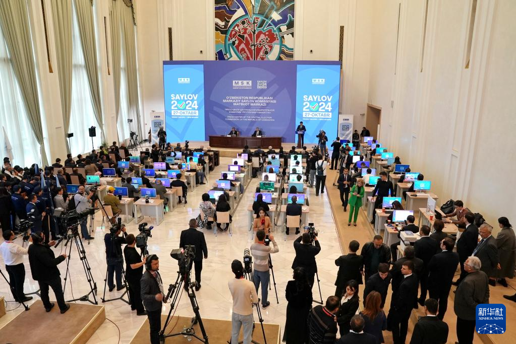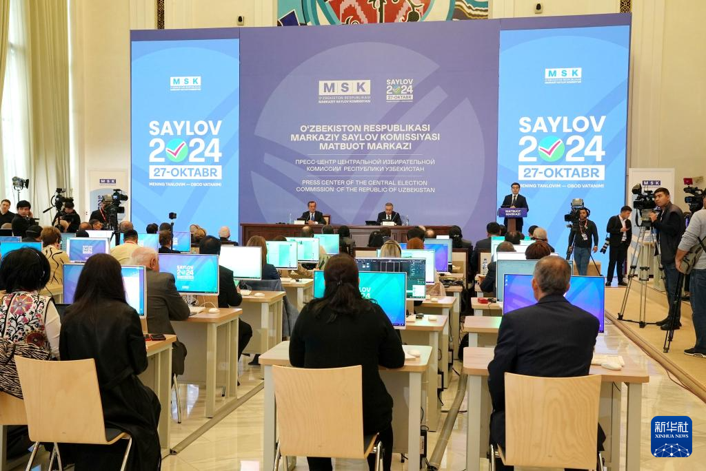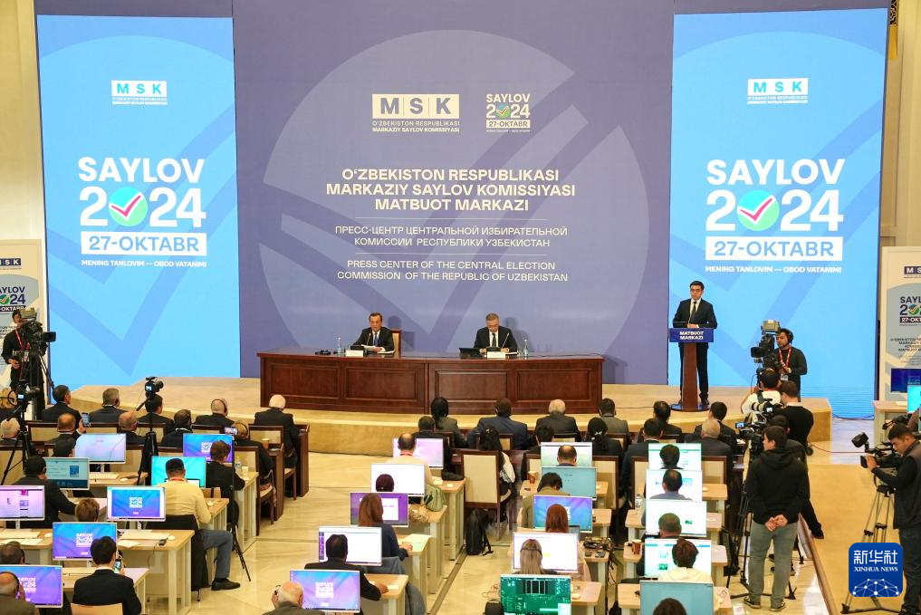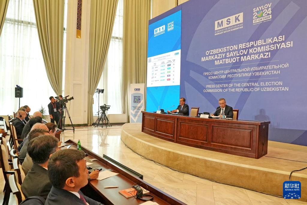 10月28日,烏茲別克斯坦中央選舉委員會在首都塔什干舉行新聞發(fā)布會。新華社發(fā)(扎法爾攝)