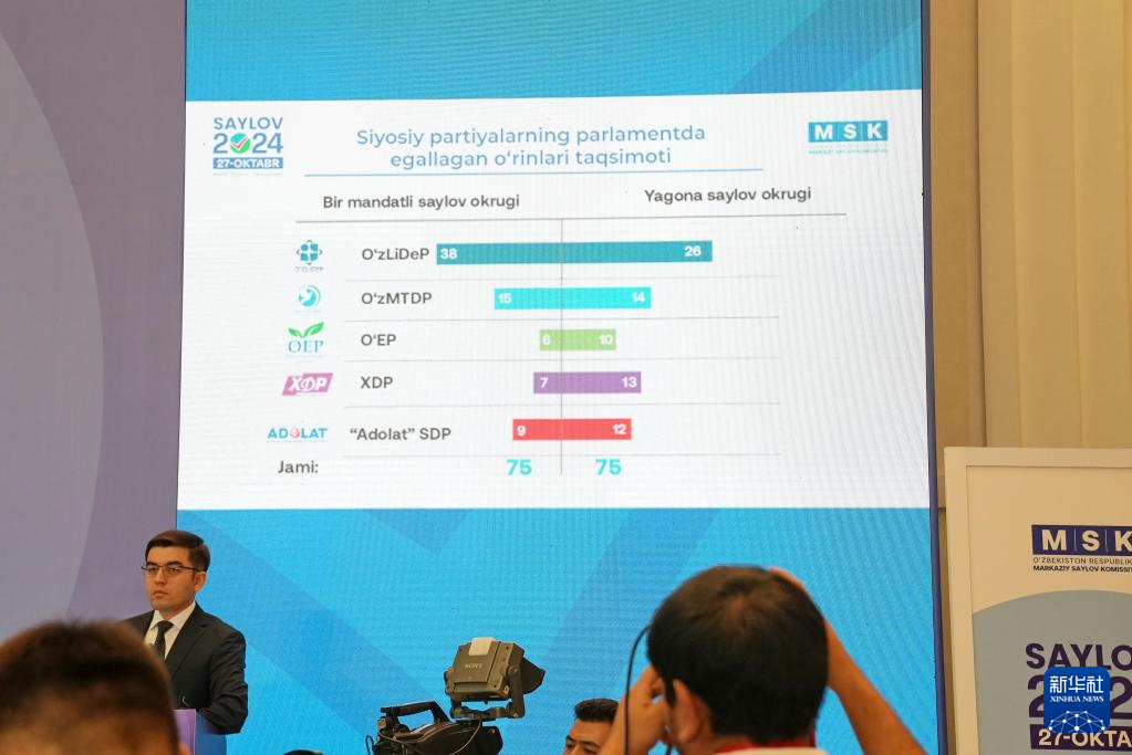 10月28日,烏茲別克斯坦中央選舉委員會在首都塔什干舉行新聞發(fā)布會宣布烏最高會議立法院(議會下院)選舉初步結(jié)果。新華社發(fā)(扎法爾攝)