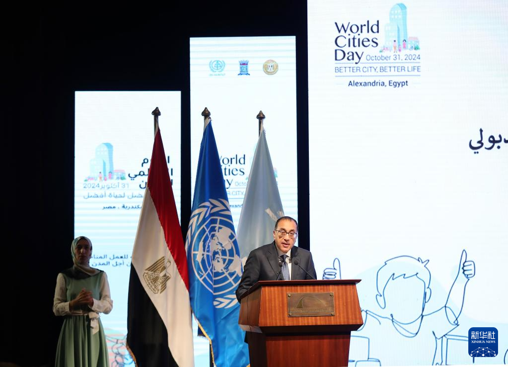 10月31日,在埃及亞歷山大,埃及總理馬德布利在活動上致辭。新華社記者 王東震 攝