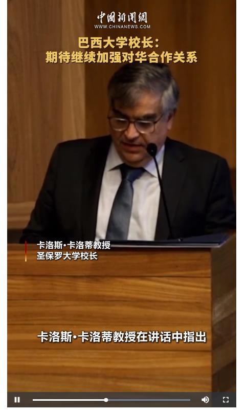 近日,“中巴青年故事會”活動在巴西圣保羅大學舉行,圣保羅大學校長卡洛斯·卡洛蒂教授(Carlos Carlotti)在講話中指出,巴中兩國有許多共同之處,在經濟、農業(yè)、綠色能源、文化、電影等領域,合作潛力巨大,期待未來進一步加強對華合作。(制作 林卓瑋 攝像 郝云暉)