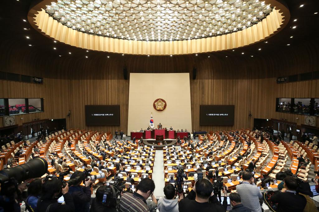 12月14日,在韓國首都首爾,韓國國會議員參加彈劾動議案投票。新華社記者 姚琪琳 攝