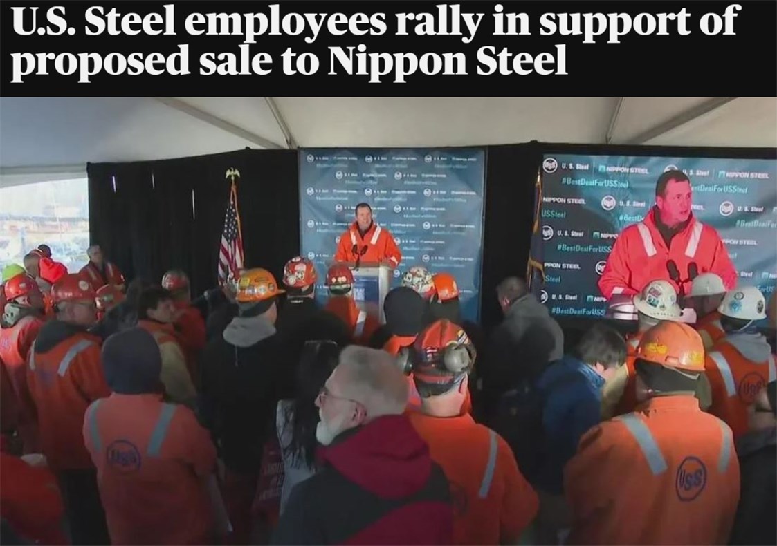 △美國(guó)哥倫比亞廣播公司網(wǎng)站:2024年12月12日,美鋼管理層和員工在位于賓夕法尼亞州的克萊頓工廠舉行集會(huì),支持這樁收購(gòu)交易。