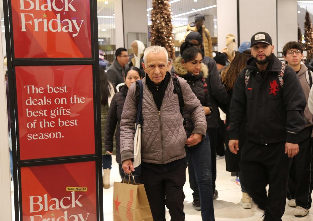 2024年11月29日,在美國(guó)紐約曼哈頓島的一家商場(chǎng)內(nèi),人們經(jīng)過“黑色星期五”促銷廣告牌。新華社記者劉亞南攝
