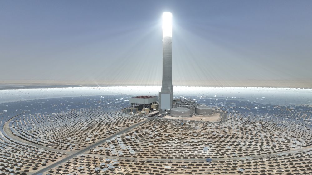 從迪拜出發(fā),驅(qū)車(chē)南下前往馬克圖姆太陽(yáng)能公園,距離目的地20多公里便能看到一個(gè)耀眼光球,高達(dá)262米的集熱塔巍然聳立在沙漠深處,這里便是中國(guó)和阿聯(lián)酋共建綠色絲綢之路重點(diǎn)合作項(xiàng)目——迪拜馬克圖姆太陽(yáng)能公園四期光熱光伏綜合發(fā)電項(xiàng)目。