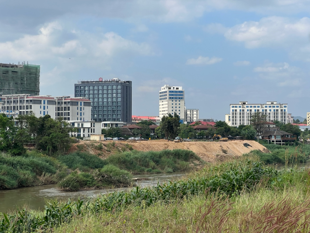 2023年11月28日,從泰國境內(nèi)拍攝的緬甸境內(nèi)建筑。(新華社記者林昊攝)