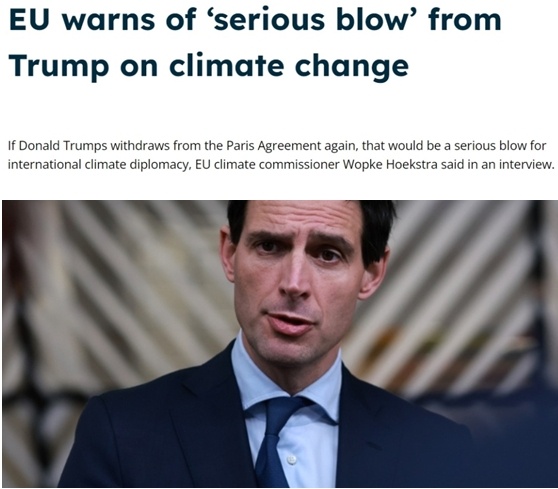 歐盟委員會負(fù)責(zé)氣候行動的委員沃普克·胡克斯特拉日前警告,如果特朗普再次讓美國退出《巴黎協(xié)定》,全球為應(yīng)對氣候變化所做的努力將受到嚴(yán)重打擊。