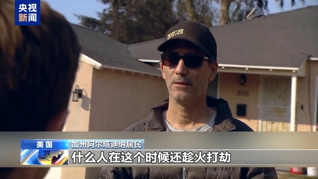 在受到“伊頓山火”侵襲的阿爾塔迪納地區(qū),多名當(dāng)?shù)鼐用窬驮庥鋈胧覔尳俚耐{。一名居民說,他和鄰居的幾座房屋在山火中得以幸存。他們在自行滅火的過程中,有兩伙人試圖破門而入,實施搶劫,被他們趕跑。