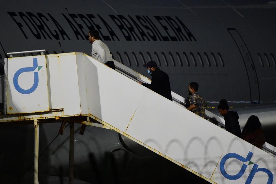 2025年2月7日,在巴西東北部塞阿拉州福塔萊薩市,被美國驅(qū)逐出境的第二批巴西非法移民登上一架巴西空軍飛機。新華社發(fā) 盧西奧·塔沃拉 攝