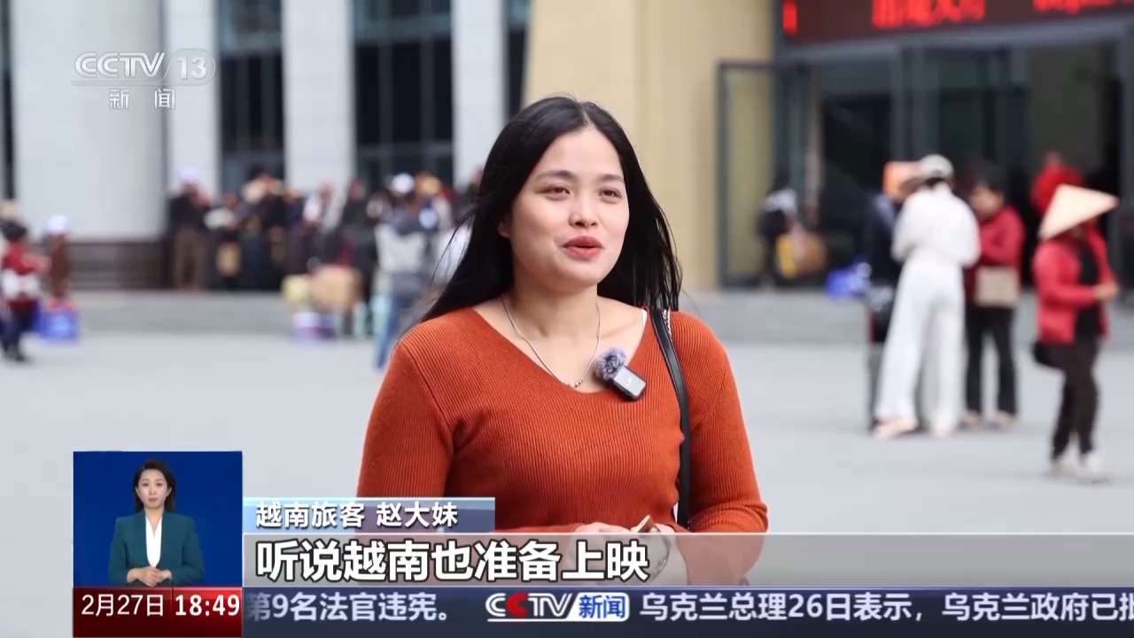 越南旅客 趙大妹:過年的時候我來到河口看過《哪吒》,聽說越南也準備上映,我想帶我全家一起去看看。