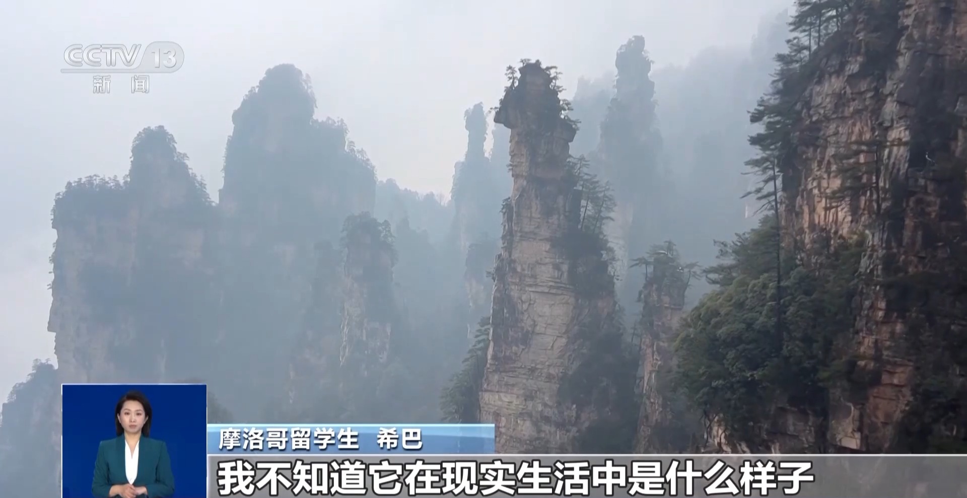 摩洛哥留學生 希巴:看完電影后我想去張家界,我不知道它在現實生活中是什么樣子,但它看起來就像天堂,整個水域,山脈,一切都非常棒,美麗。