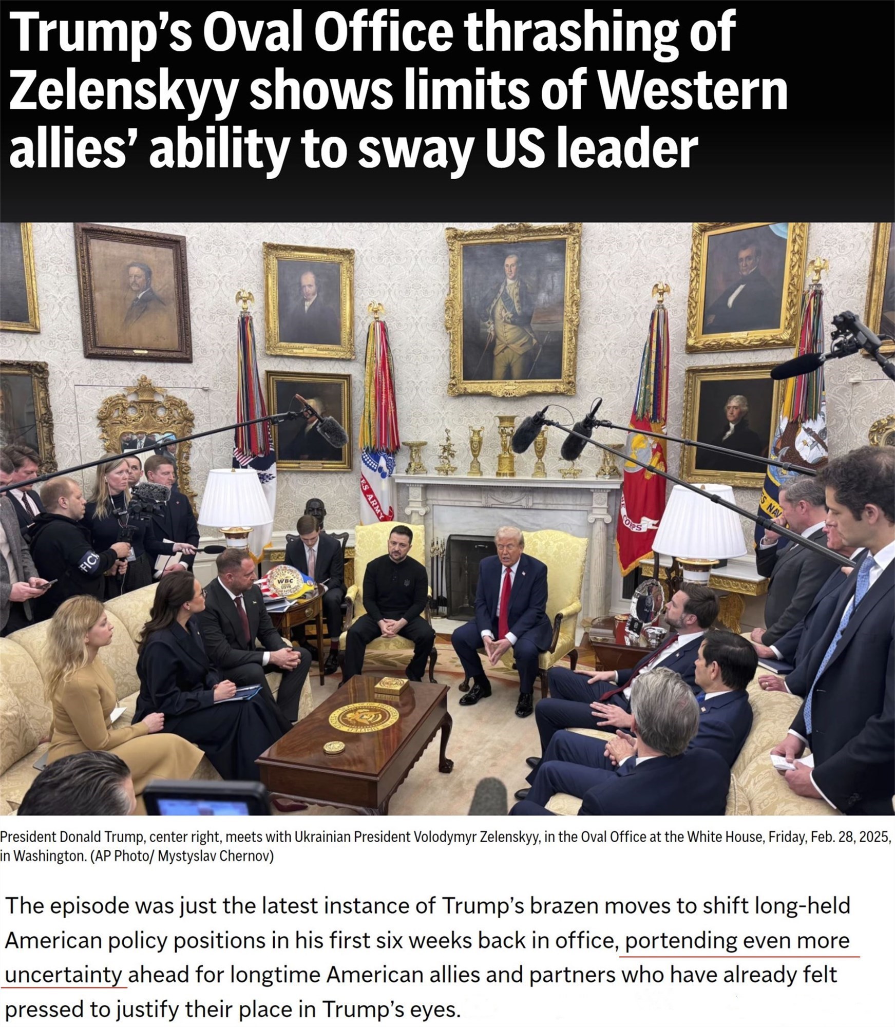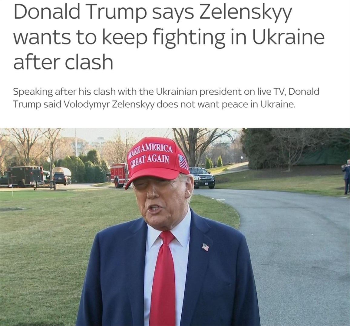 美國(guó)總統(tǒng)特朗普與到訪的烏克蘭總統(tǒng)澤連斯基2月28日在白宮當(dāng)著媒體的面“大吵一架”,引發(fā)國(guó)際輿論大嘩。