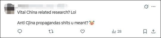 在該所X平臺賬號轉發(fā)《華爾街日報》報道的評論區(qū),有人說:“重要的中國相關研究?哈哈哈,你說的是反華宣傳吧?!?/p>