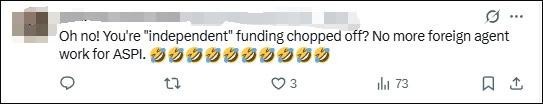 “哦豁!‘獨立智庫’的資金被切斷啦?ASPI這下做不成外國代理人的勾當咯。”