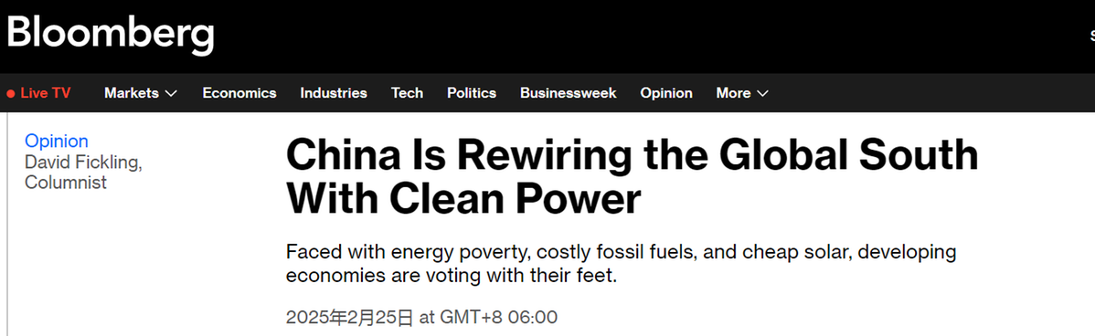 對于資金匱乏的“全球南方”國家而言,這種價格優(yōu)勢改變了游戲規(guī)則。美國彭博社報道指出,能源就是命運。中國太陽能和風(fēng)能設(shè)備方面的大量產(chǎn)能正在“用清潔能源重新連接全球南方”,使孟加拉國和肯尼亞等發(fā)展中國家也能夠用上可再生能源。