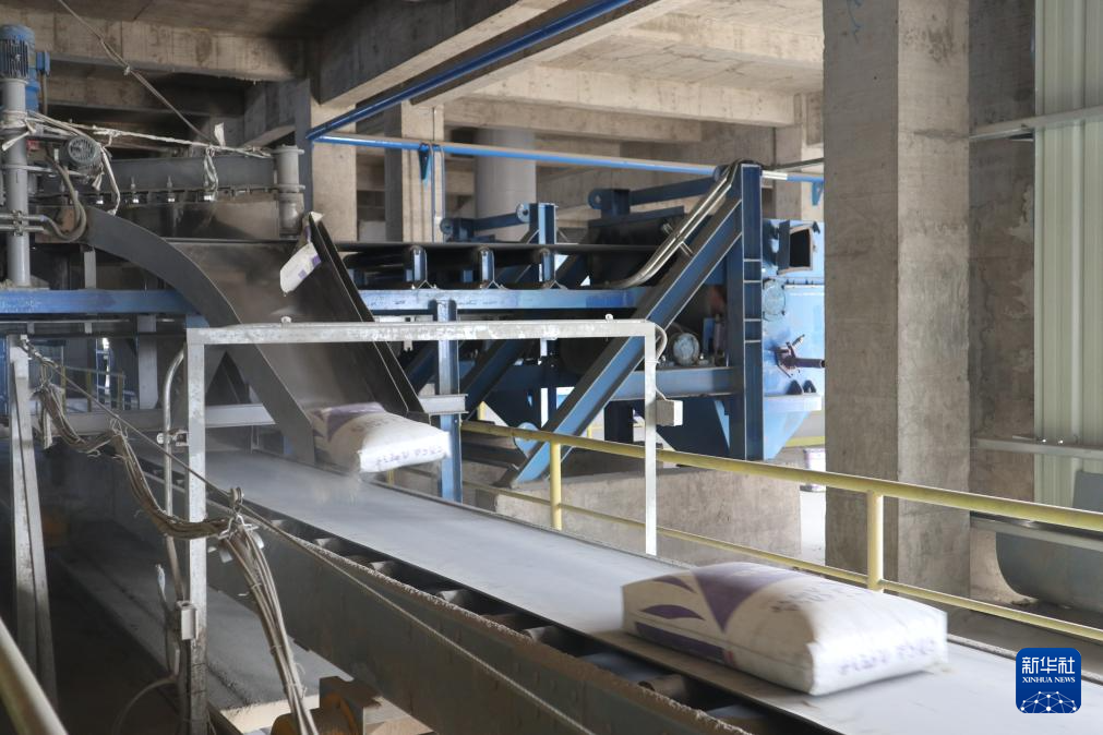 3月5日,在埃塞俄比亞萊米國(guó)家水泥廠,一袋袋水泥在傳送帶上經(jīng)過。新華社記者 劉方強(qiáng) 攝