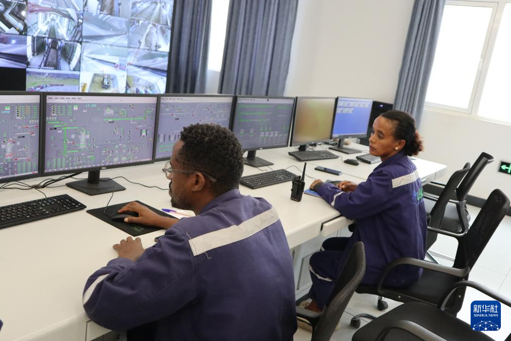 3月5日,當(dāng)?shù)貑T工在埃塞俄比亞萊米國(guó)家水泥廠的中控室工作。新華社記者 劉方強(qiáng) 攝