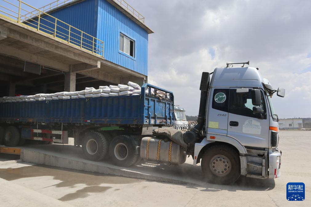 3月5日,在埃塞俄比亞萊米國(guó)家水泥廠,一輛裝滿水泥的卡車即將離開廠區(qū)。新華社記者 劉方強(qiáng) 攝