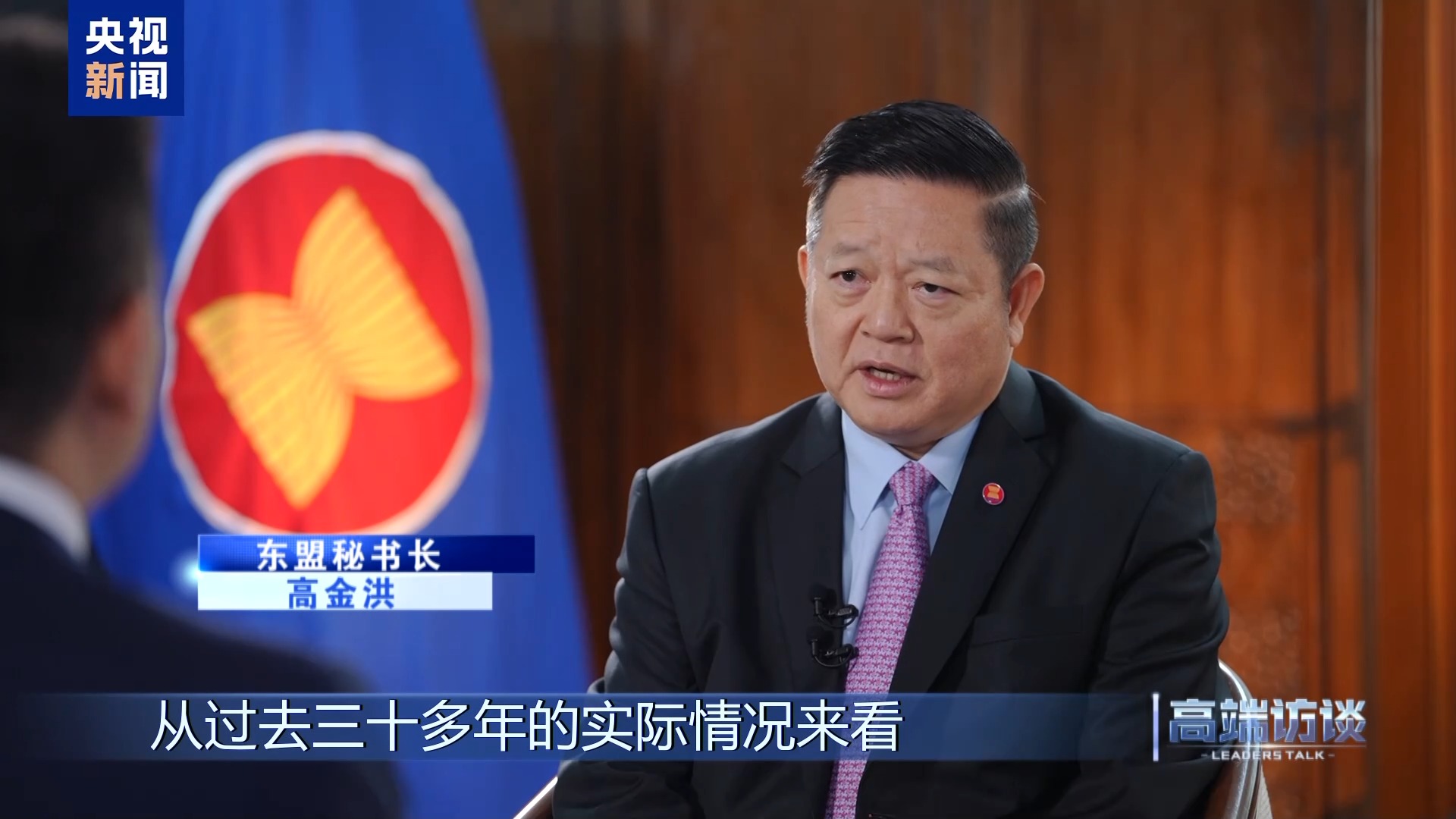 王冠:我們現(xiàn)在所在的位置是位于印尼首都雅加達的東盟秘書處總部。在這里,我們即將對話本期節(jié)目嘉賓——東盟秘書長高金洪。高金洪秘書長期待如何深化雙方務(wù)實合作成果?他對地區(qū)和平穩(wěn)定有何看法?全球性挑戰(zhàn)日益復(fù)雜,中國與東盟應(yīng)該如何把握大勢,排除干擾、共享機遇、共創(chuàng)繁榮?讓我們一起在對話中尋找答案。