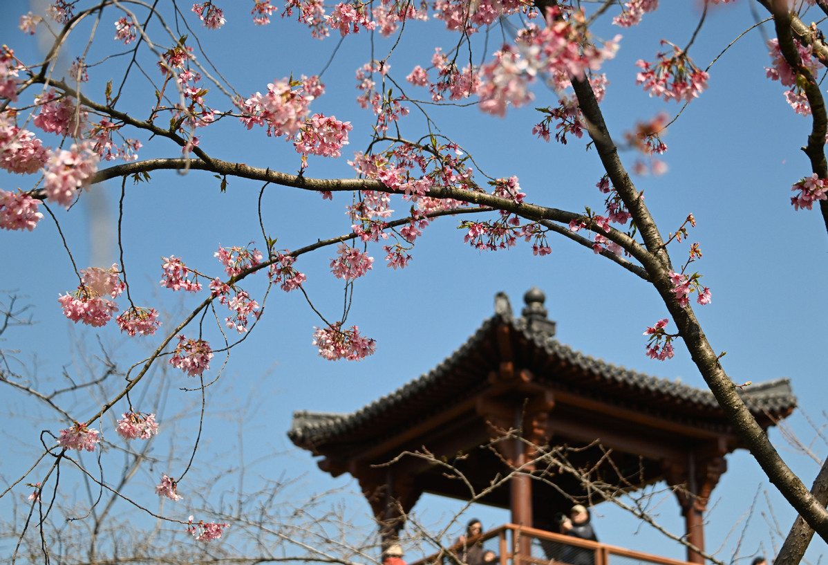 3月18日在湖北省武漢市東湖櫻園拍攝的櫻花。(圖片來(lái)源:新華社)