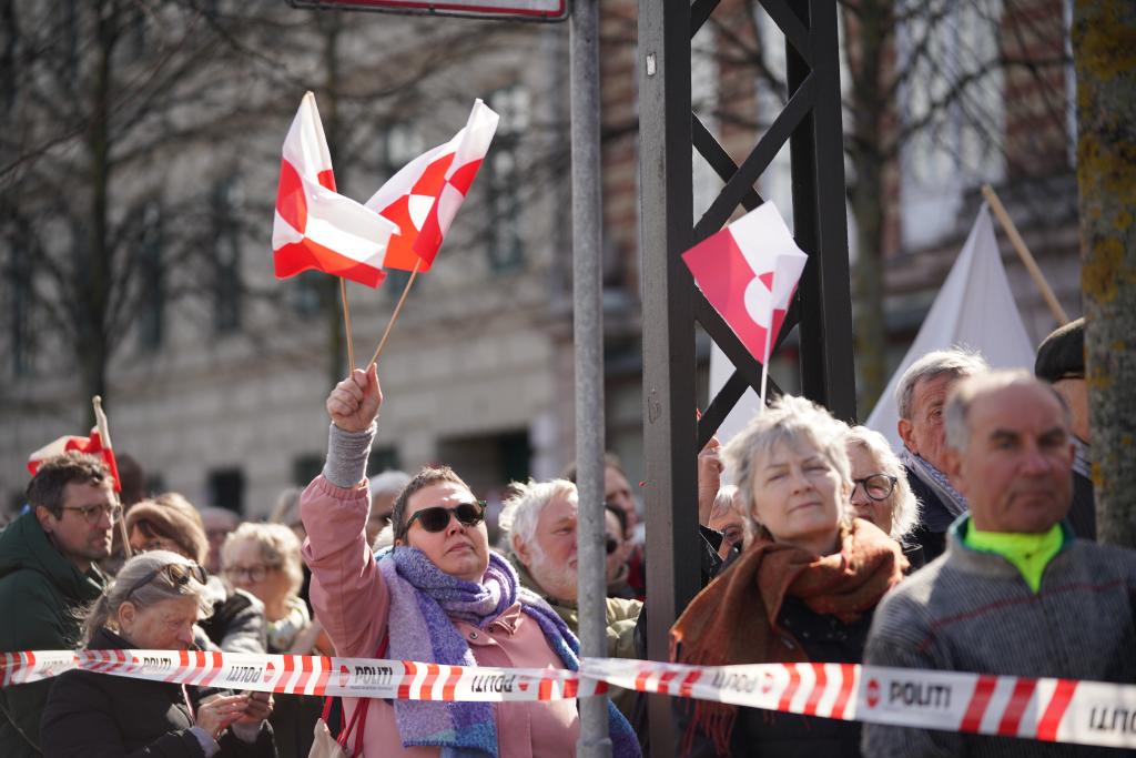 前聯(lián)合國大會主席、丹麥前外交大臣莫恩斯·呂克托夫特在現(xiàn)場發(fā)表演講說:“我們必須在聯(lián)合國為我們的主張而斗爭??梢源_定的是,絕大多數(shù)國家都會譴責(zé)美國對格陵蘭島的侵略行為。我們永不放棄!”演講引發(fā)民眾歡呼,他們用丹麥語和格陵蘭語反復(fù)高喊:“格陵蘭島不出售!”