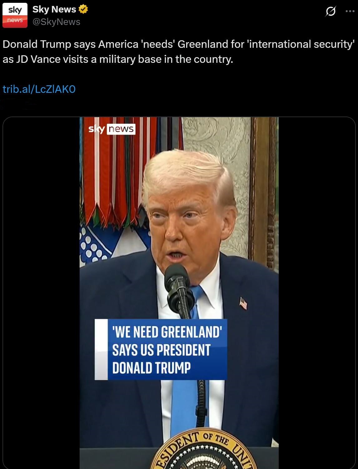 “格陵蘭島對(duì)于美國(guó)的安全至關(guān)重要,而它現(xiàn)在非常脆弱。如果格陵蘭島人民愿與美國(guó)合作,而且我也認(rèn)為他們最終會(huì)與美國(guó)合作,我們可以讓他們更安全。”