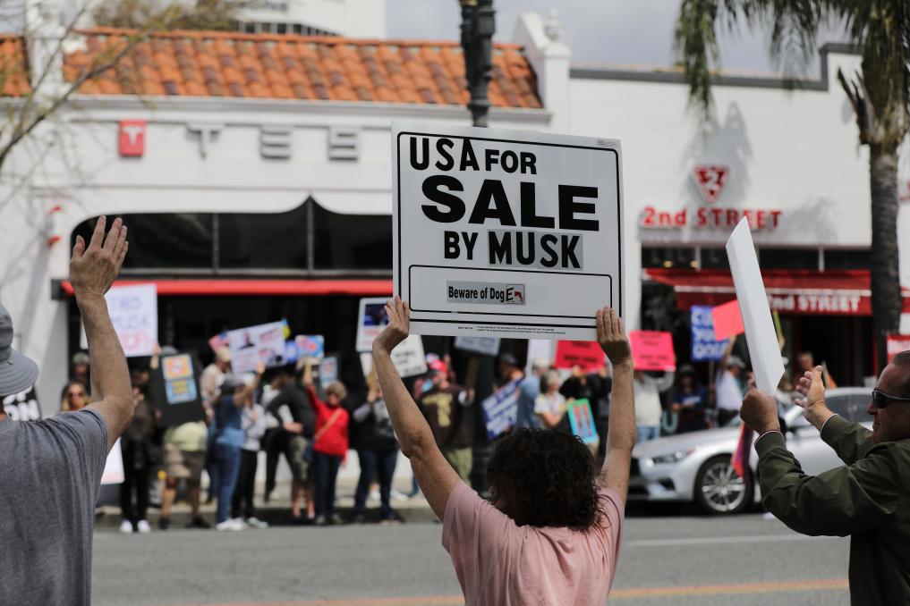 美國(guó)多地持續(xù)爆發(fā)反對(duì)馬斯克的抗議活動(dòng)。據(jù)美聯(lián)社報(bào)道,3月29日,抗議者開(kāi)始涌向位于新澤西、馬薩諸塞、康涅狄格、紐約、馬里蘭、明尼蘇達(dá)和得克薩斯等州的特斯拉門店,舉著“如果你討厭?cǎi)R斯克就按喇叭”等標(biāo)語(yǔ)。