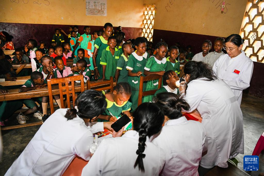 中國(山西)第24批援喀麥隆醫(yī)療隊姆巴爾馬約分隊3日在姆巴爾馬約市一所小學(xué)開展義診活動,為當(dāng)?shù)貙W(xué)生和教職員工提供口腔檢查、健康咨詢及疾病預(yù)防宣教服務(wù)。