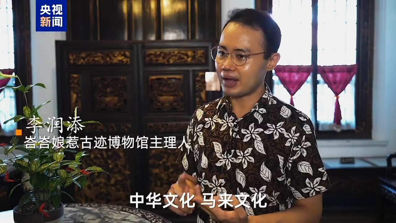 峇峇娘惹古跡博物館主理人 李潤添:所謂的娘惹文化其實是中華文化、馬來文化以及西方文化的融合。眼看好像是從西方來的椅子,但是你仔細觀察,它的手扶那邊有龍頭,里邊還含著一粒珠。