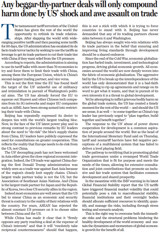 原標題:Any beggar-thy-partner deals will only compound harm done by US' shock and awe assault on trade