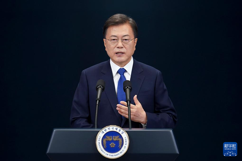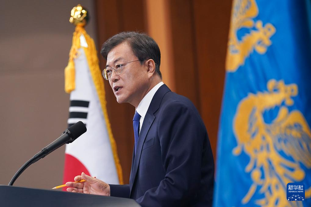 據韓聯社4月24日報道,韓國前總統(tǒng)文在寅因涉嫌受賄被檢方提起訴訟。這張拍攝于2020年5月10日的資料照片顯示,時任韓國總統(tǒng)文在寅在韓國首爾青瓦臺發(fā)表講話。新華社發(fā)(青瓦臺供圖)