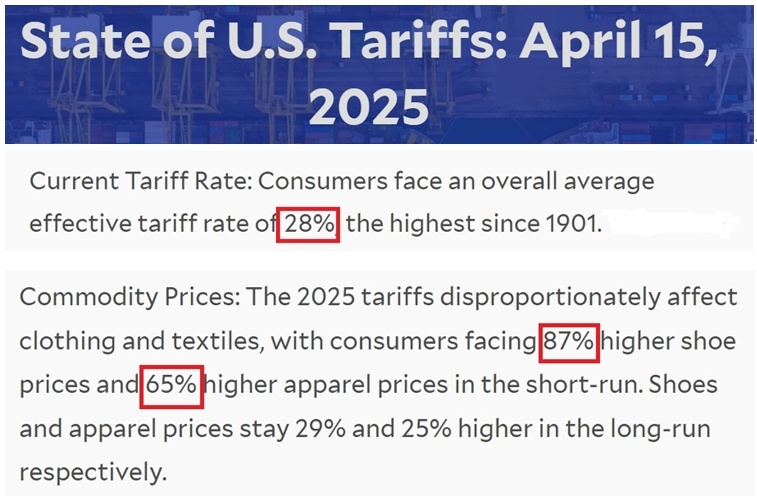 其中,關(guān)稅對(duì)服裝和紡織品價(jià)格的影響尤為明顯,鞋類和服裝的價(jià)格短期內(nèi)將分別大幅上漲87%和65%。