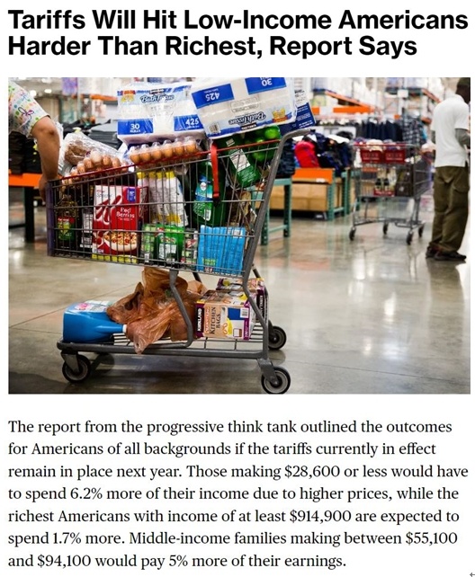 用耶魯預(yù)算實(shí)驗(yàn)室主任、白宮經(jīng)濟(jì)顧問委員會(huì)前首席經(jīng)濟(jì)學(xué)家厄尼·特德斯奇的話說,“美國低收入人群受到關(guān)稅的影響會(huì)更大”。