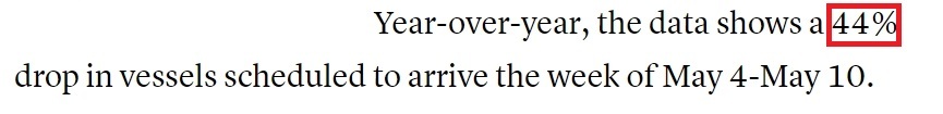 美國消費(fèi)者新聞與商業(yè)頻道網(wǎng)站:長灘港首席執(zhí)行官科爾德羅預(yù)計(jì),5月4日至5月10日期間,到港貨船數(shù)量與去年同期相比將下降44%。