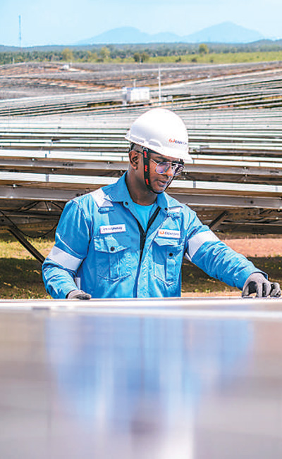 馬來西亞吉打州南部,由中企承建并運(yùn)營(yíng)的瓜拉基蒂光伏電站上,工人在巡檢設(shè)備。張紋綜攝(新華社發(fā))