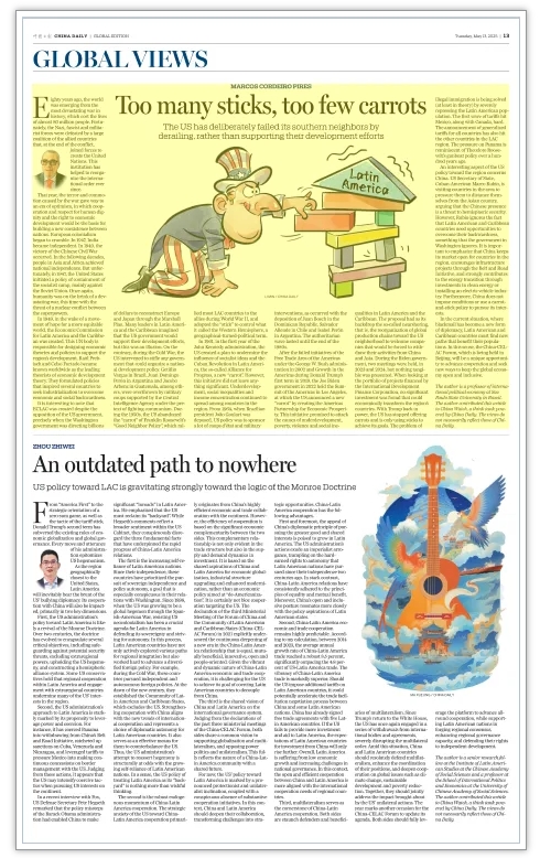 有意思的是,美國對拉美地區(qū)政策中有一個方面跟中國有關(guān)。美國國務(wù)卿、古巴裔美國人魯比奧今年在拉美多國訪問期間,要求它們同中國保持距離,認(rèn)為中國的存在是對西半球安全的威脅。但是,盧比奧忽視了一個事實,那就是拉美國家需要機(jī)會來擺脫落后面貌——這也是美國政府忽視的事實。需要強(qiáng)調(diào)的是,中國將繼續(xù)向拉美國家開放市場,在“一帶一路”框架下拉動基礎(chǔ)設(shè)施項目建設(shè),并通過投資清潔能源或建設(shè)電動汽車產(chǎn)業(yè),為該地區(qū)的能源轉(zhuǎn)型做出積極貢獻(xiàn)。不僅如此,中國的合作從不附帶政治條件,也不會采取“胡蘿卜加大棒”的政策來追求自己的利益。