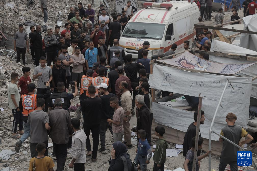 5月15日,在加沙地帶北部杰巴利耶難民營(yíng),人們?cè)谝攒娹Z炸后開(kāi)展救援。新華社發(fā)(阿卜杜勒·拉赫曼·薩拉馬攝)