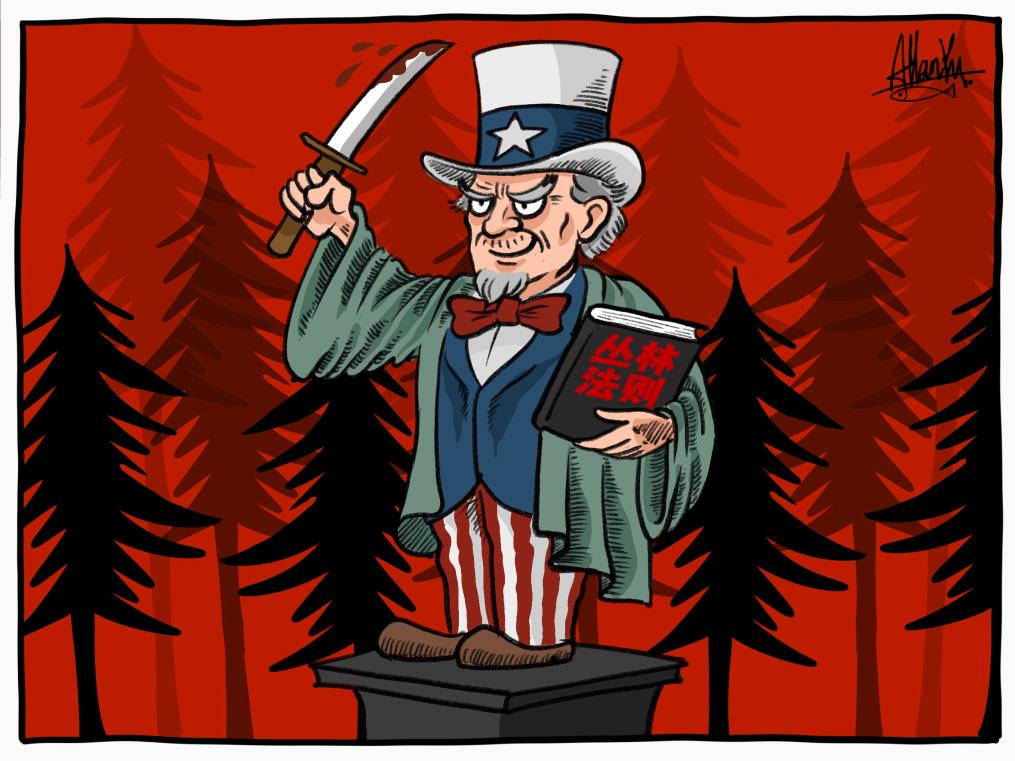 事實(shí)真是如此嗎?二戰(zhàn)后,美國主導(dǎo)建立了所謂“自由主義國際秩序”,并在這一“秩序”下包裝推出許多維護(hù)美國利益的“規(guī)則”。美國通過北約和海外軍事基地構(gòu)建全球軍事網(wǎng)絡(luò),假“維護(hù)和平”“傳播民主”之名實(shí)施武力侵略或政治干涉;靠美元霸權(quán)薅全世界羊毛;不斷將自身利益凌駕于全球秩序之上……美國匹茲堡大學(xué)客座法學(xué)教授丹尼爾·科瓦利克指出,所謂“秩序”“規(guī)則”等旗號(hào),不過是美國用來搶奪和維護(hù)其霸權(quán)利益的幌子,華盛頓實(shí)際上干的還是“殖民掠奪的老本行”。