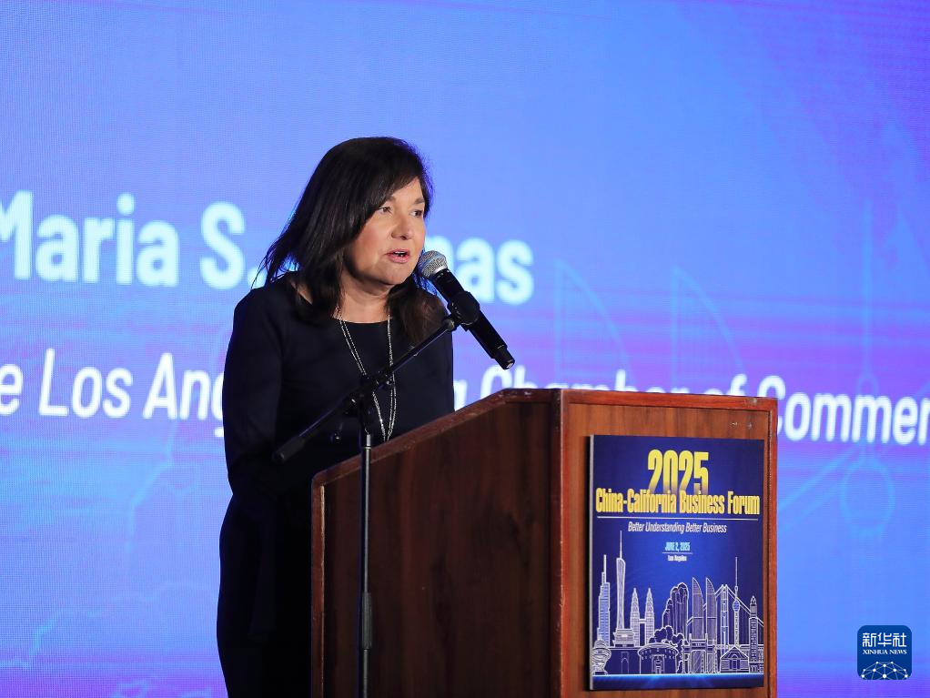 6月2日,在美國洛杉磯,洛杉磯地區(qū)商會主席瑪麗亞·薩利納斯在2025年中國—加州經(jīng)貿論壇上發(fā)表講話。新華社發(fā)(邱晨攝)