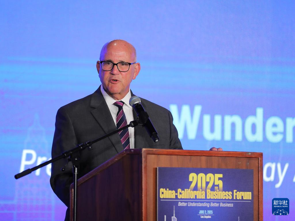 6月2日,在美國洛杉磯,舊金山灣區(qū)委員會主席吉姆·旺德曼在2025年中國—加州經(jīng)貿論壇上發(fā)表講話。新華社發(fā)(邱晨攝)