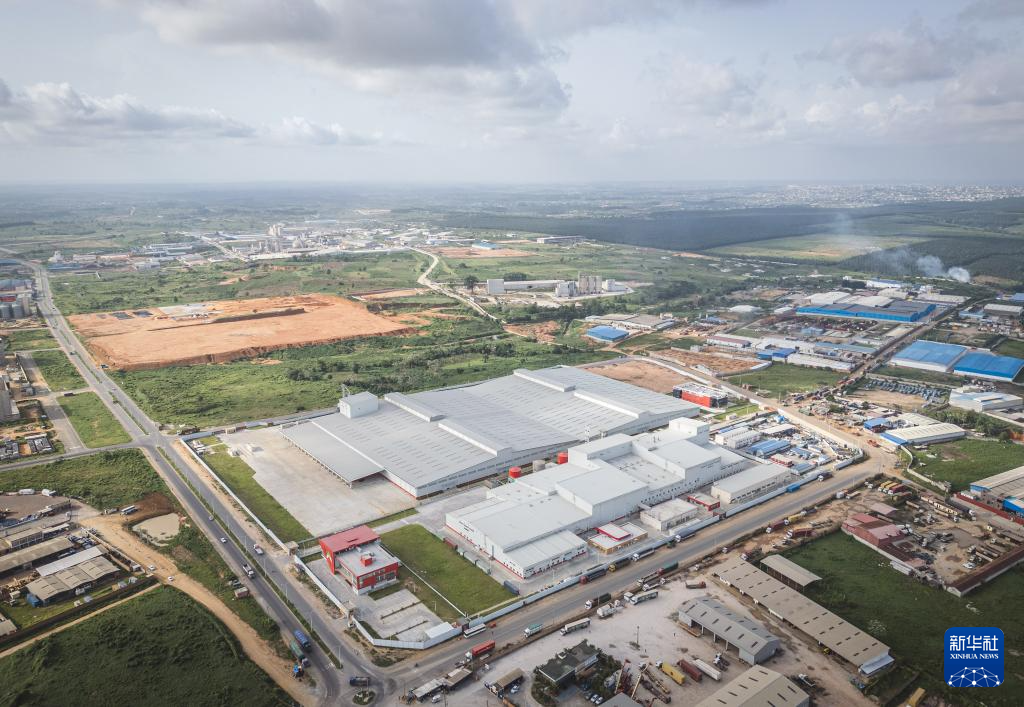 這是5月27日在科特迪瓦阿比讓西北部PK24工業(yè)園拍攝的阿比讓可可加工廠(無人機照片)。新華社記者 王冠森 攝