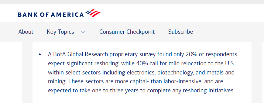 美國美銀證券(BofA Securities)6月發(fā)布的最新報告指出,盡管美國政府以“保護(hù)本土企業(yè)、保障就業(yè)”為由祭出關(guān)稅大棒,鼓勵企業(yè)將生產(chǎn)線遷回本土,但企業(yè)在重新布局全球供應(yīng)鏈時,主要考量的因素已不再是成本,回流美國制造的意愿有限。