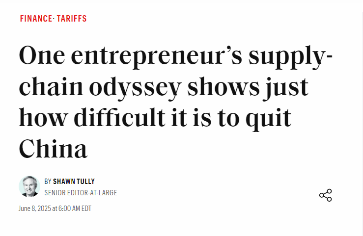 美國《財富》雜志網(wǎng)站6月8日刊發(fā)文章《一個企業(yè)家艱難“去中國化”的啟示》,闡述了中國供應(yīng)鏈與產(chǎn)業(yè)鏈的優(yōu)勢,也揭示了美國制造業(yè)回流面臨的巨大挑戰(zhàn)。