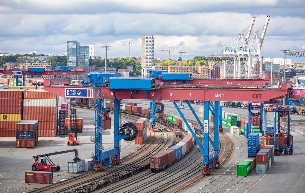 這是5月28日拍攝的德國漢堡港口與物流股份公司旗下漢堡港CTT集裝箱碼頭景象。新華社記者張帆攝